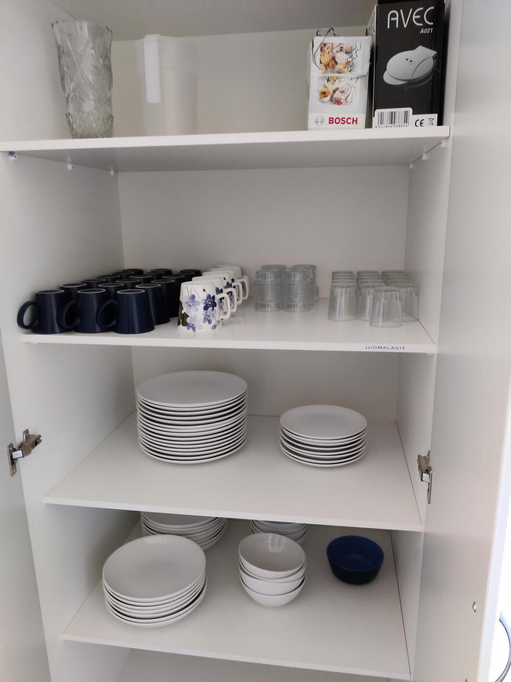 Oravanpesältä löytyy myös astioita: kahvikuppeja, laseja, mukeja ja erilaisia lautasia sekä aterimia 18 kpl kutakin. Syksyllä 2024 astiasto täydentyi mm. kakkulautasella, sekä tarjoilukulhoilla. Käytössä on myös mm. kahvinkeitin, vedenkeitin, jääkaappipakastin, mikro, uuni ja tiskikone, jotka tietysti kuuluvat vuokraan.